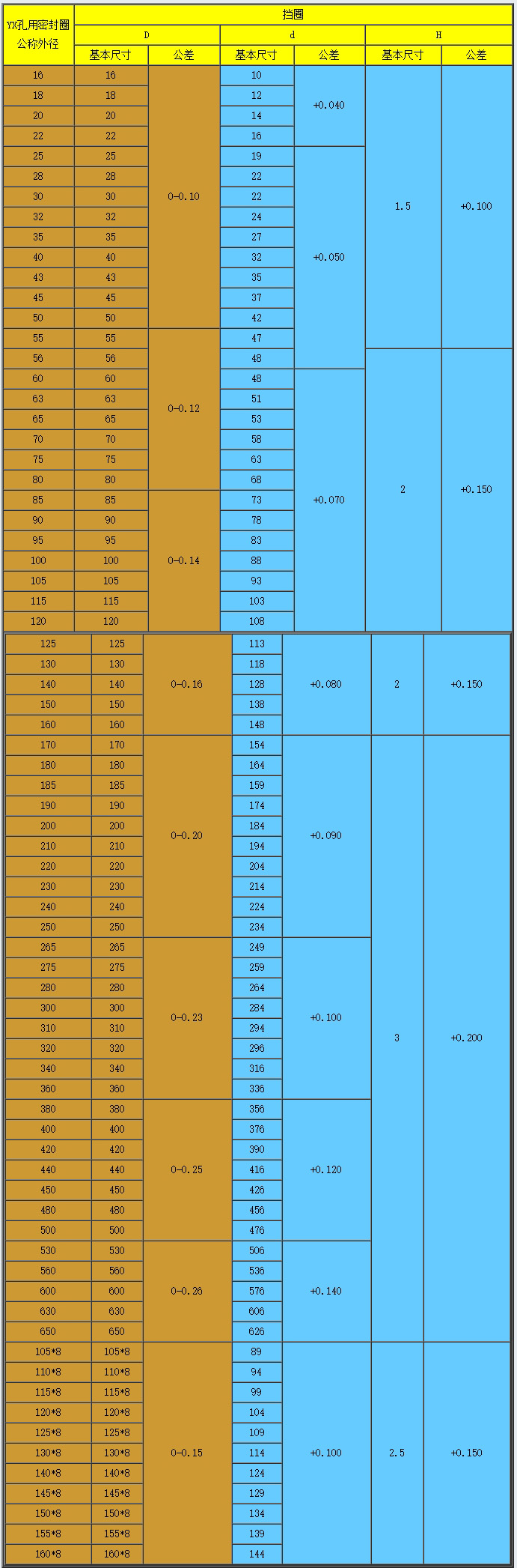 產(chǎn)品用途:本標(biāo)準(zhǔn)適用于油缸工作壓力大于16MPa時配合YX型密封圈使用,或油缸偏心受力時,起保護(hù)密封圈的作用.